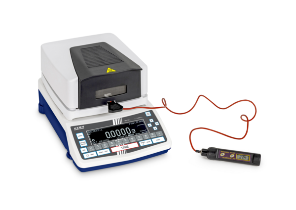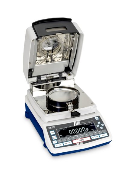 De Vochtbalans Kern DIS is een professioneel meetinstrument voor nauwkeurige vochtgehaltebepalingen. Met een afleesbaarheid van 0.1 of 1 mg levert het betrouwbare resultaten op, zelfs bij lage vochtgehaltes. De intuïtieve drie-staps bediening (tarreren – monster toevoegen – starten) garandeert reproduceerbare analyses zonder ingewikkelde procedures. Het grafische LCD-scherm met 15 mm cijfers en achtergrondverlichting biedt optimale afleesbaarheid. De 400 W halogeenkwartsstraler zorgt voor uitstekende temperatuurregeling, ideaal voor temperatuurgevoelige monsters. Realtime droogcurven op het display geven direct inzicht in het meetproces. Met intern geheugen voor 1.000 meetresultaten en wachtwoordbeveiliging is dit een betrouwbare keuze voor laboratoria en kwaliteitscontrole.